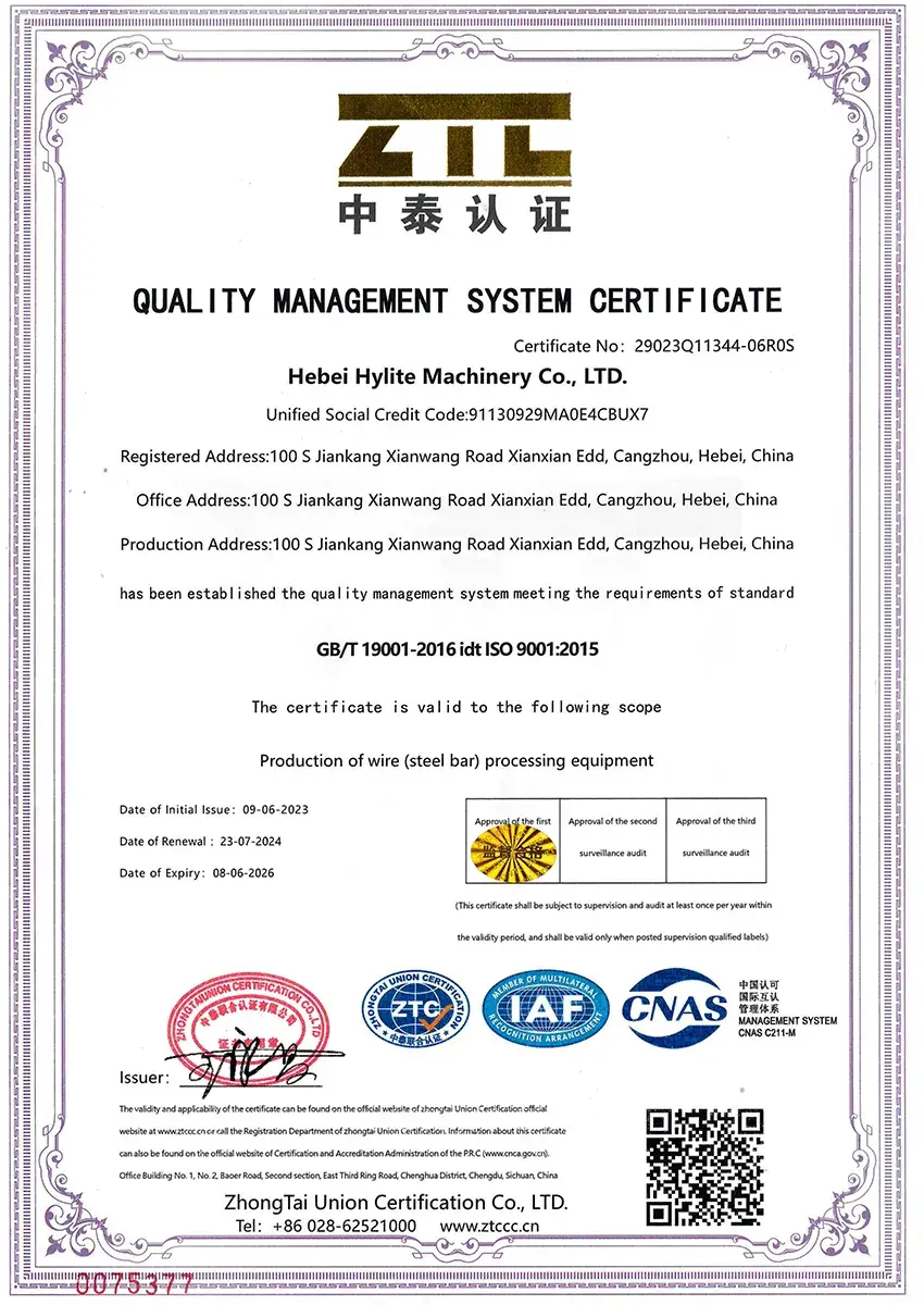 Located in Xianxian Economic Development Zone, Cangzhou, Hebei, Hebei Hylite Machinery Company focuses on the development, manufacturing, sales, and service of rebar and metallic wire processing equipment. Years of experience in steel processing machinery have supported the growth of a product range that includes cold-rolled ribbed rebar production lines, straightening machines, wire drawing machines, flux-cored welding wire production lines, PC strand lines, and PC steel bar equipment.